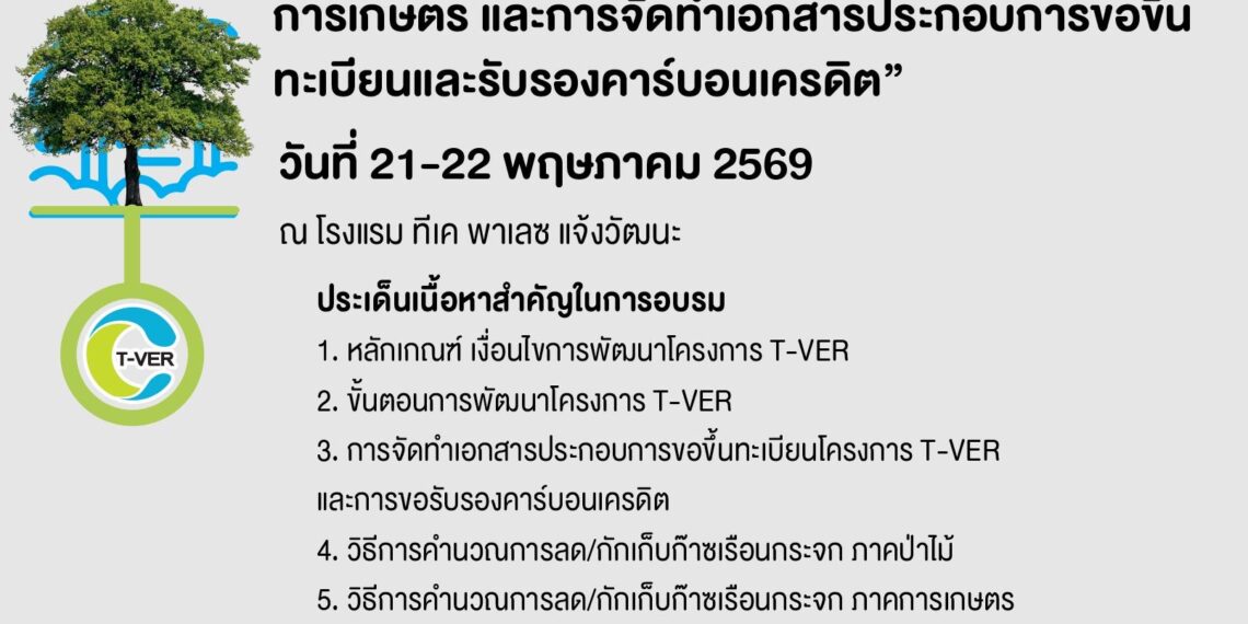 109 เปิดรับลงทะเบียน หลักสูตรการพัฒนาโครงการ T-VER ภาคป่าไม้และการเกษตร และการจัดทำเอกสารประกอบการขอขึ้นทะเบียนและรับรองคาร์บอนเครดิต In ปฎิทินกิจกรรม